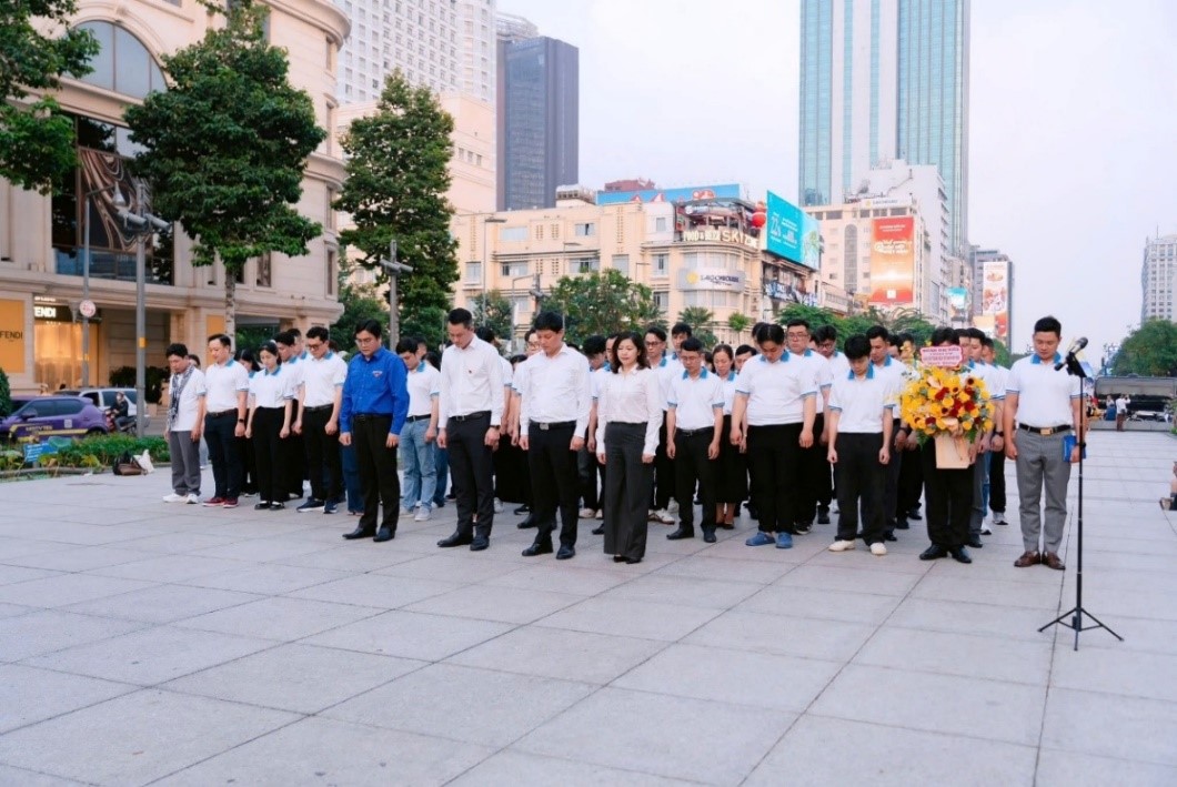 Đoàn đại biểu dâng hoa – báo công lên Bác tại Tượng đài Chủ tịch Hồ Chí Minh